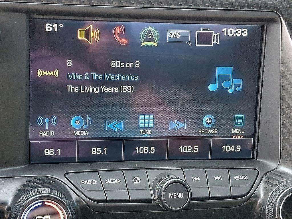 THIS VEHICLE INCLUDES THE FOLLOWING FEATURES AND OPTIONS: 4-Wheel Disc Brakes, 8-Way Driver & Passenger Seat Adjusters, 9 Speakers, ABS brakes, Air Conditioning, Alloy wheels, AM/FM radio: SiriusXM, Apple CarPlay, Automatic temperature control, Bose Premium 9-Speaker Audio System Feature, Bumpers: body-color, Compass, Delay-off headlights, Driver door bin, Driver vanity mirror, Dual front impact airbags, Dual front side impact airbags, Electronic Stability Control, Emergency communication system, Exterior Parking Camera Rear, Four wheel independent suspension, Front anti-roll bar, Front Bucket Seats, Front Center Armrest, Front dual zone A/C, Front reading lights, Fully automatic headlights, GT Bucket Seats, Heated door mirrors, High-Intensity Discharge Headlights, Illuminated entry, Leather Shift Knob, Leather steering wheel, Low tire pressure warning, Occupant sensing airbag, Outside temperature display, Painted Body-Color Carbon Fiber Removable Roof Panel, Panic alarm, Passenger door bin, Passenger vanity mirror, Power door mirrors, Power driver seat, Power passenger seat, Power steering, Power windows, Premium audio system: Chevrolet MyLink, Radio data system, Rear anti-roll bar, Rear window defroster, Remote keyless entry, Speed control, Speed-sensing steering, Spoiler, Sport steering wheel, Steering wheel mounted audio controls, Tachometer, Telescoping steering wheel, Tilt steering wheel, Traction control, Trip computer, Variably intermittent wipers, Voltmeter, and Wheels: 19 x 8.5 Fr & 20 x 10 Rr 5-Split Spoke. Odometer is 7051 miles below market average!