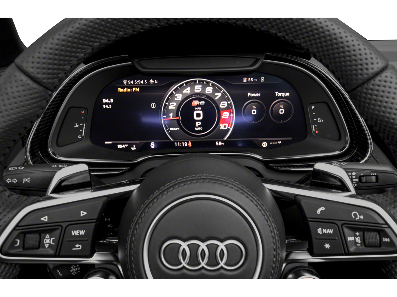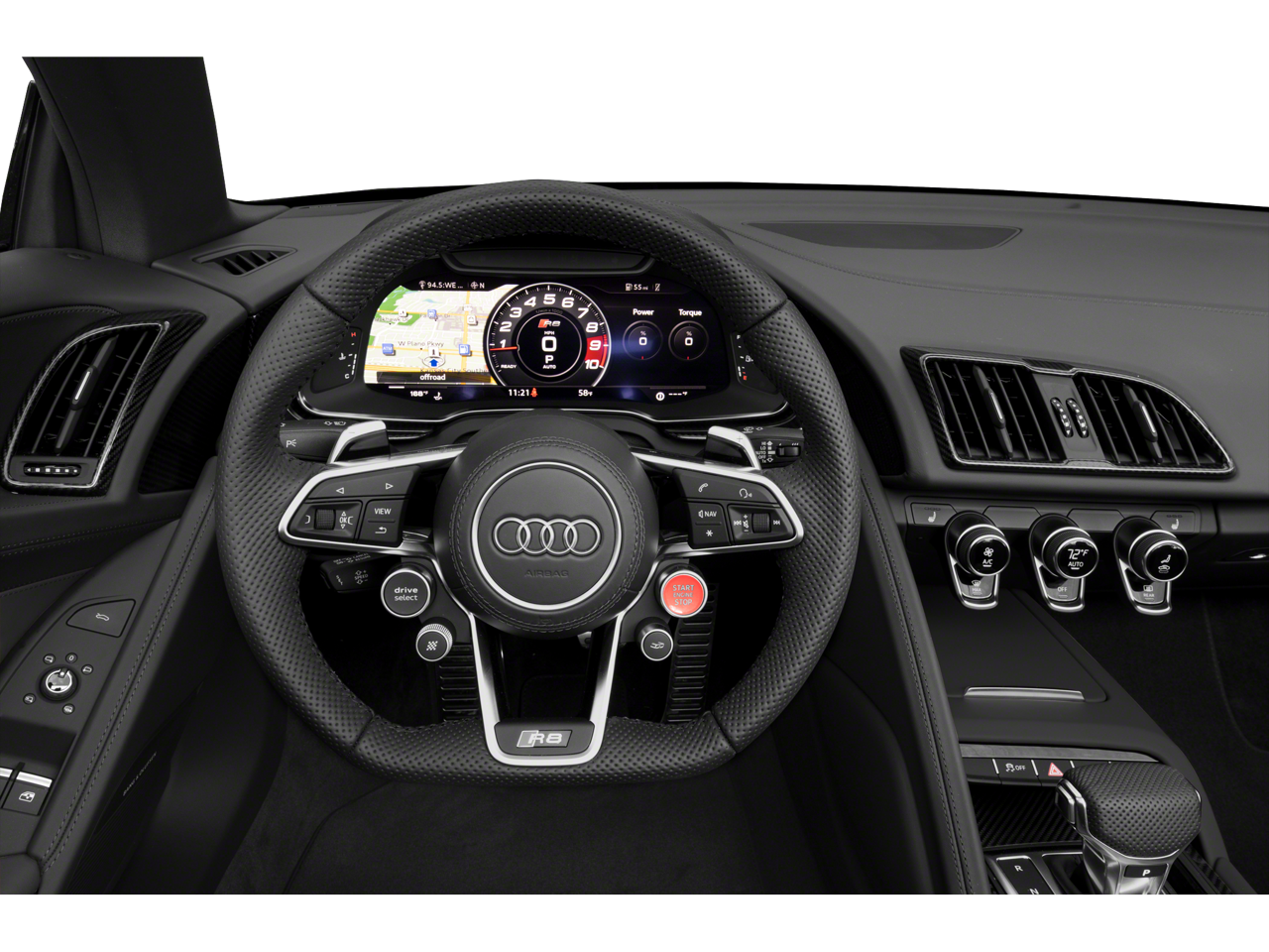 THIS VEHICLE INCLUDES THE FOLLOWING FEATURES AND OPTIONS: 20 Wheel Package (Wheels: 20 10-Spoke-Y Design Forged High-Gloss), Carbon Exterior Package (Carbon Sigma Sideblades), Carbon Interior Package, Diamond Stitch Leather Package (Diamond Stitched Seat Trim), Full Leather Package, Black Leather, 13 Speakers, 4-Wheel Disc Brakes, ABS brakes, Adaptive suspension, Air Conditioning, Alloy wheels, AM/FM radio: SiriusXM, Audi smartphone interface (Apple CarPlay/Android Auto), Auto High-beam Headlights, Auto-dimming door mirrors, Auto-dimming Rear-View mirror, Automatic temperature control, Brake assist, Bumpers: body-color, Compass, Contrast Stitching, Convertible roof lining, Convertible roof wind blocker, Delay-off headlights, Driver door bin, Driver vanity mirror, Dual front impact airbags, Dual front side impact airbags, Electronic Stability Control, Exterior Parking Camera Rear, Fine Nappa Leather Seat Trim, Four wheel independent suspension, Front anti-roll bar, Front Bucket Seats, Front Center Armrest, Front fog lights, Front reading lights, Fully automatic headlights, Garage door transmitter: HomeLink, Glass rear window, Heated door mirrors, Heated front seats, Heated Front Sport Seats, Illuminated entry, Integrated roll-over protection, Knee airbag, Leather Shift Knob, LED Headlights w/Audi Laser Light, Low tire pressure warning, Navigation system: MMI Navigation plus, Occupant sensing airbag, Outside temperature display, Panic alarm, Passenger door bin, Passenger vanity mirror, Power convertible roof, Power door mirrors, Power driver seat, Power passenger seat, Power steering, Power windows, Radio data system, Radio: MMI Navigation Plus, Rain sensing wipers, Rear anti-roll bar, Rear fog lights, Rear window defroster, Red Brake Calipers for Steel Brakes, Remote CD player, Remote keyless entry, Security system, Speed control, Speed-Sensitive Wipers, Sport steering wheel, Steering wheel mounted audio controls, Tachometer, Telescoping steering wheel, Tilt steering wheel, Traction control, Trip computer, Turn signal indicator mirrors, Variably intermittent wipers, Voltmeter, and Wheels: 19 5-Double-Spoke Design Forged.