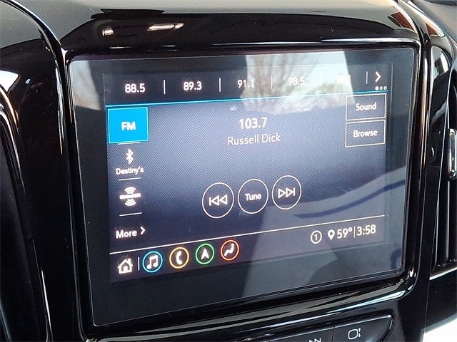 - Audio system, Chevrolet Infotainment 3 Premium system with connected Navigation, 8" diagonal HD color touchscreen, AM/FM stereo, Bluetooth® audio streaming for 2 active devices, Apple CarPlay and Android Auto capable, enhanced voice recognition, additional memory for in-vehicle apps, cloud connected personalization for select infotainment and vehicle settings. Subscription required for enhanced and connected services after trial period