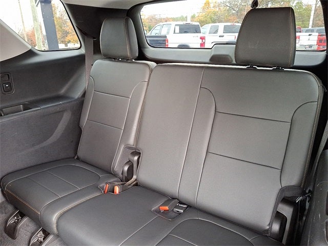 This Vehicle Includes the Following Options: Front License Plate Bracket Mounting Package, Preferred Equipment Group 2LT (Gloss Black Emblem Kit (LPO)), Trailering Equipment (Heavy-Duty Cooling System, Hitch Guidance w/Hitch View, and Trailering Assist Guidelines), 10 Speakers, 3.49 Axle Ratio, 3rd row seats: split-bench, 4-Wheel Disc Brakes, 7-Passenger Seating (2-2-3 Seating Configuration), ABS brakes, Air Conditioning, Alloy wheels, AM/FM radio: SiriusXM with 360L, Apple CarPlay/Android Auto, Auto High-beam Headlights, Auto-dimming Rear-View mirror, Automatic temperature control, Bose Premium 10-Speaker Audio System Feature, Brake assist, Bumpers: body-color, Compass, Delay-off headlights, Driver door bin, Driver vanity mirror, Dual front impact airbags, Dual front side impact airbags, Electronic Stability Control, Emergency communication system: OnStar and Chevrolet connected services capable, Four wheel independent suspension, Front anti-roll bar, Front Bucket Seats, Front Center Armrest, Front dual zone A/C, Front fog lights, Front reading lights, Fully automatic headlights, Garage door transmitter, Heated door mirrors, Heated front seats, Heated steering wheel, High-Intensity Discharge Headlights, Illuminated entry, Leather steering wheel, Leather-Appointed Seat Trim, Low tire pressure warning, Navigation System, Occupant sensing airbag, Outside temperature display, Overhead airbag, Overhead console, Panic alarm, Passenger door bin, Passenger vanity mirror, Power door mirrors, Power driver seat, Power Liftgate, Power passenger seat, Power steering, Power windows, Premium audio system: Chevrolet MyLink, Radio data system, Radio: Chevrolet Infotainment 3 Premium System, Rear air conditioning, Rear anti-roll bar, Rear reading lights, Rear window defroster, Rear window wiper, Remote keyless entry, Roof rack: rails only, Security system, SiriusXM w/360L, Speed control, Speed-sensing steering, Spoiler, Steering wheel mounted audio controls, Tachometer, Telescoping steering wheel, Tilt steering wheel, Traction control, Trip computer, Turn signal indicator mirrors, Variably intermittent wipers, Voltmeter, and Wheels: 20 Dark Android Painted Aluminum.