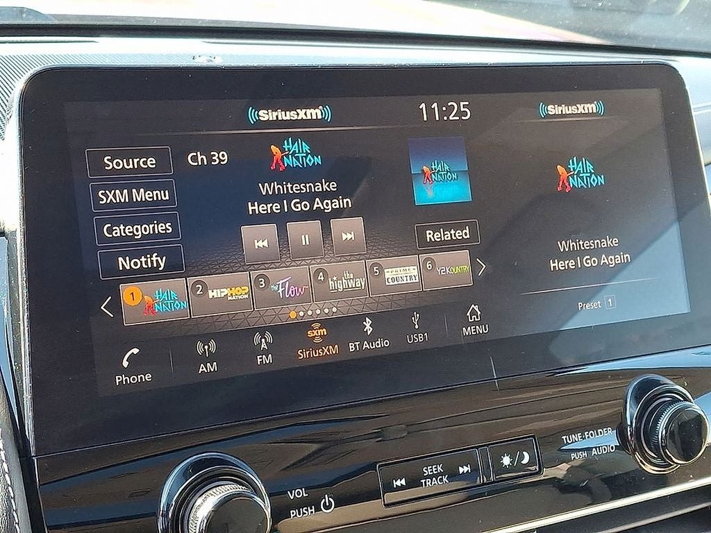 - Radio: NissanConnect w/SiriusXM -inc: 13-speaker Bose audio system, wireless Apple CarPlay, Android Auto, Nissan door to door navigation, 12.3" color display w/multi-touch control, SiriusXM Traffic and Travel Link w/3 month complimentary trial access, NissanConnect services powered by SiriusXM, Bluetooth® hands-free phone system, hands-free text messaging assistant and Wi-Fi hotspot
