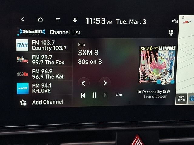 - Radio: AM/FM/HD/SiriusXM Display Audio -inc: 10.25" high resolution touchscreen display, navigation, SirusXM data services: NavTraffic, NavWeather, sports and stocks w/3-month trial, Bose premium audio w/8 speakers, center channel and subwoofer, Blue Link connected car system, wired Apple CarPlay and Android Auto, Bluetooth® hands-free phone system w/voice recognition, USB ports, dynamic voice recognition and speed-sensitive automatic volume control
