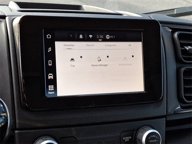 THIS VEHICLE INCLUDES THE FOLLOWING FEATURES AND OPTIONS: Quick Order Package 22A, 100 Amp Battery, 4 Speakers, 4-Wheel Disc Brakes, 4.08 Axle Ratio, 6-Way Manual Adjust Driver Seat, 96 Wide Exterior Mirrors, ABS brakes, Air Conditioning, AM/FM radio: SiriusXM, Apple CarPlay/Android Auto, Black/Gray Seats, Bodyside moldings, Brake assist, Bulb Out Detection Defeat for LED, Cloth Bucket Seats, Daytime Running Headlamps, Driver door bin, Driver Seat Armrest, Driver's Seat Mounted Armrest, Electronic Stability Control, Exterior Parking Camera Rear, Front anti-roll bar, Front Bucket Seats, Front License Plate Bracket, Front reading lights, Front wheel independent suspension, Illuminated entry, Low tire pressure warning, Manual 2-Way Driver Lumbar Adjust, Manual Folding Exterior Mirrors, Outside temperature display, Overhead airbag, Overhead console, Passenger Bucket Seat, Passenger door bin, Power steering, Power windows, Radio: Uconnect 5 w/7 Display, Rear anti-roll bar, Remote keyless entry, Speed Control, Steering wheel mounted audio controls, Tachometer, Telescoping steering wheel, Traction control, Trip computer, Turn signal indicator mirrors, Variably intermittent wipers, Wheel Center Cap, Wheels: 16 x 6.0 Aluminum Painted Silver, Wheels: 16 x 6.0 Steel, and Wide Power Heated Mirrors.