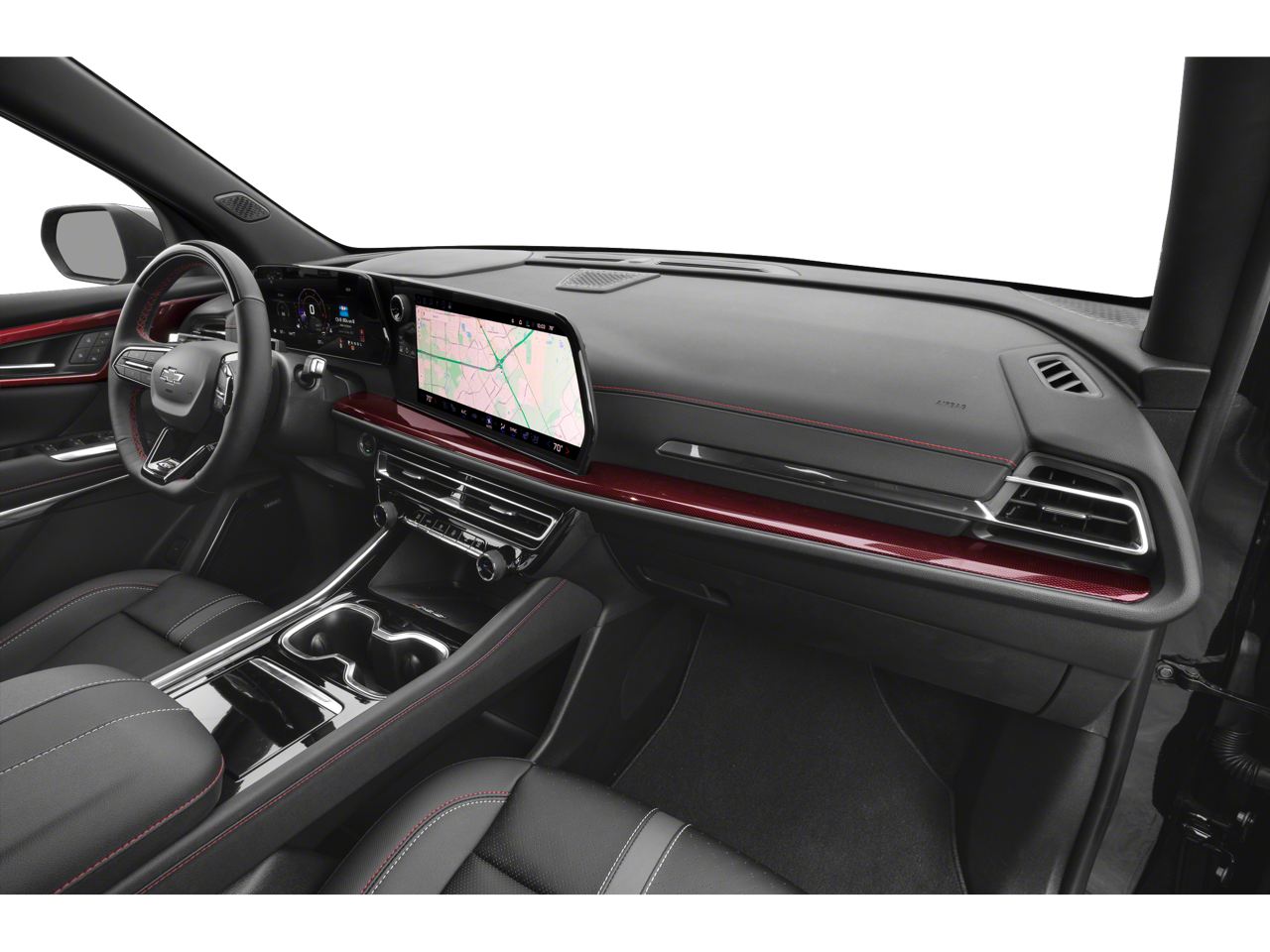 This Vehicle Includes the Following Options: Floor Liner Package (LPO) (1st & 2nd Row All-Weather Floor Liners (LPO) and 3rd Row All-Weather Floor Liner (LPO)), Preferred Equipment Group 1RS, 10 Speakers, 3rd row seats: split-bench, 4-Wheel Disc Brakes, 6-Way Power Front Passenger Seat Adjuster, 8-Way Power Driver Seat Adjuster, ABS brakes, Air Conditioning, Alloy wheels, AM/FM radio: SiriusXM with 360L, Apple CarPlay/Android Auto, Auto High-beam Headlights, Auto-dimming door mirrors, Automatic temperature control, Bose Premium 10-Speaker Audio System Feature, Brake assist, Bumpers: body-color, Compass, Delay-off headlights, Driver 4-Way Power Lumbar Seat Adjuster, Driver door bin, Driver vanity mirror, Dual front impact airbags, Dual front side impact airbags, Electronic Stability Control, Emergency communication system, Exterior Parking Camera Rear, Four wheel independent suspension, Front anti-roll bar, Front Bucket Seats, Front Center Armrest, Front dual zone A/C, Front Passenger 4-Way Power Lumbar Seat Adjuster, Front reading lights, Fully automatic headlights, Heated door mirrors, Heated front seats, Heated rear seats, Heated steering wheel, Illuminated entry, Low tire pressure warning, Navigation System, Not Equipped w/Heated Wiper Park, Occupant sensing airbag, Outside temperature display, Overhead airbag, Overhead console, Panic alarm, Passenger door bin, Passenger vanity mirror, Perforated Leather-Appointed Seat Trim, Power door mirrors, Power driver seat, Power Liftgate, Power moonroof, Power passenger seat, Power steering, Power windows, Radio data system, Radio: 17.7 Diagonal Display, Rain sensing wipers, Rear air conditioning, Rear anti-roll bar, Rear reading lights, Rear window defroster, Rear window wiper, Remote keyless entry, Security system, SiriusXM w/360L, Speed control, Speed-sensing steering, Spoiler, Sport steering wheel, Steering wheel mounted audio controls, Tachometer, TBD Axle Ratio, Telescoping steering wheel, Tilt steering wheel, Traction control, Trip computer, Turn signal indicator mirrors, Variably intermittent wipers, Ventilated front seats, Voltmeter, and Wheels: 22 High Gloss Black Painted Aluminum.