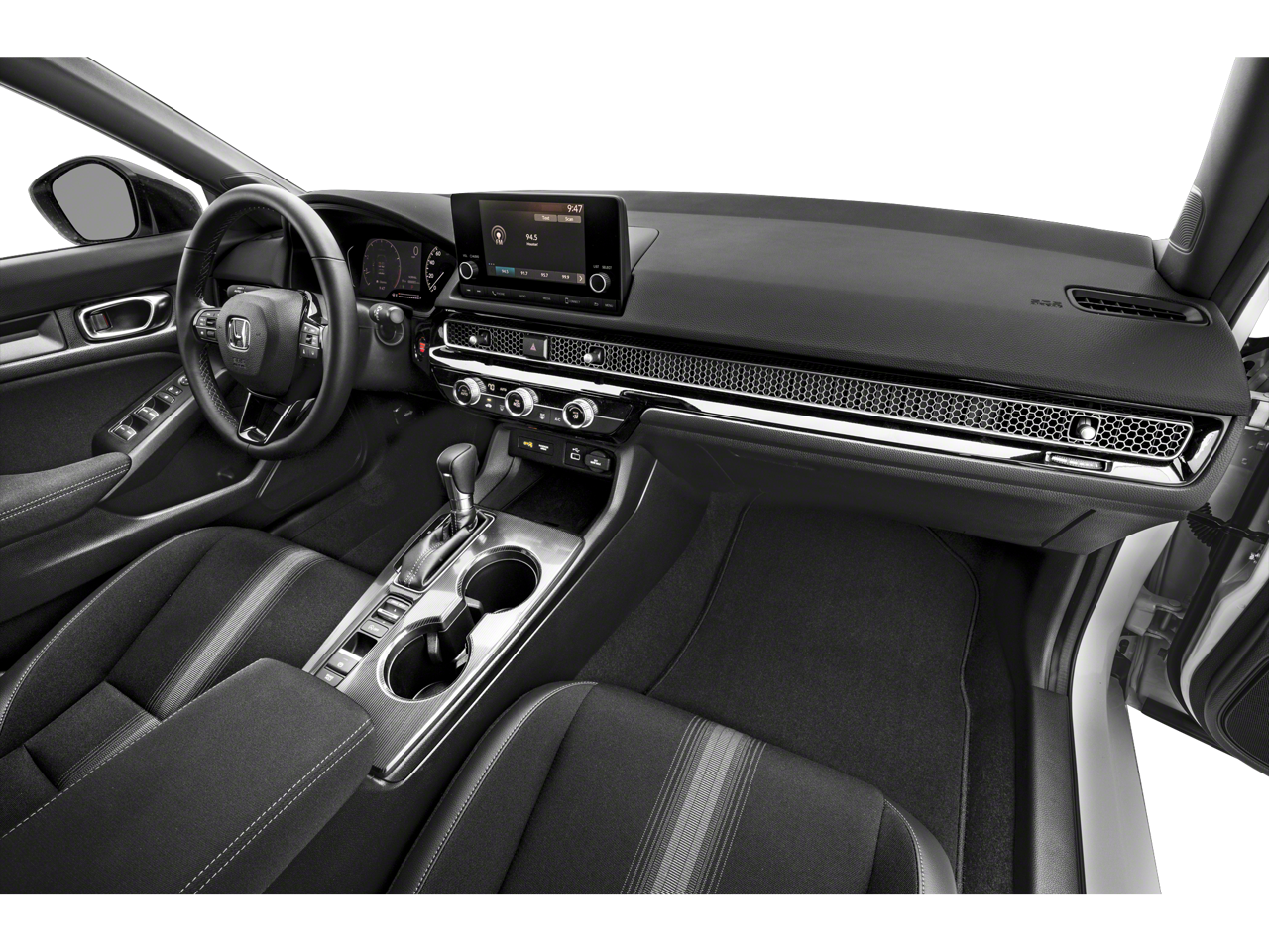THIS VEHICLE INCLUDES THE FOLLOWING FEATURES AND OPTIONS: 4-Wheel Disc Brakes, 8 Speakers, ABS brakes, Adaptive Cruise Control: Adaptive Cruise Control (ACC) with Low-Speed Follow, Air Conditioning, Alloy wheels, AM/FM radio, Apple CarPlay/Android Auto, Auto High-beam Headlights, Automatic temperature control, Brake assist, Bumpers: body-color, Cloth/Leatherette Seating Surfaces, Delay-off headlights, Driver door bin, Driver vanity mirror, Dual front impact airbags, Dual front side impact airbags, Electronic Stability Control, Emergency communication system: HondaLink, Exterior Parking Camera Rear, Four wheel independent suspension, Front anti-roll bar, Front Bucket Seats, Front Center Armrest, Front reading lights, Fully automatic headlights, Illuminated entry, Knee airbag, Leather Shift Knob, Leather steering wheel, Low tire pressure warning, Occupant sensing airbag, Outside temperature display, Overhead airbag, Panic alarm, Passenger door bin, Passenger vanity mirror, Power door mirrors, Power steering, Power windows, Radio data system, Radio: 180-Watt Audio System, Rear anti-roll bar, Rear side impact airbag, Rear window defroster, Remote keyless entry, Security system, Speed control, Speed-sensing steering, Steering wheel mounted audio controls, Tachometer, Telescoping steering wheel, Tilt steering wheel, Traction control, Trip computer, and Wheels: 18 Gloss Black Alloy. 30/37 City/Highway MPG