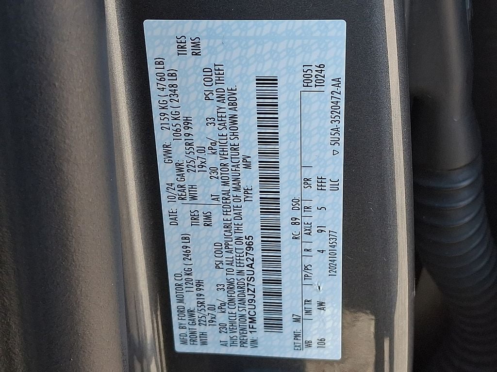 This Vehicle Includes the Following Options: Equipment Group 600A (Electronic Fuel Door Release, Neutral Towing Capability, and Pedestrian Alert Sounder), Premium Technology Package (360-Degree Camera w/Split View, Front Parking Sensors, HD Radio, Head-Up Display, Heated ActiveX-Trimmed Front Sport Contour Seats, Radio: B&O Sound System by Bang & Olufsen, and Reverse Brake Assist), 2.5L iVCT, 2.91 Axle Ratio, 4-Wheel Disc Brakes, 6 Speakers, ABS brakes, Air Conditioning, Alloy wheels, AM/FM radio: SiriusXM, AM/FM Stereo, Auto High-beam Headlights, Auto-dimming Rear-View mirror, Automatic temperature control, Brake assist, Bumpers: body-color, Compass, Delay-off headlights, Driver door bin, Driver vanity mirror, Dual front impact airbags, Dual front side impact airbags, Electronic Stability Control, Emergency communication system: SYNC 4 911 Assist, FordPass Connect, Four wheel independent suspension, Front & Rear Floor Liners w/o Carpet Mats, Front anti-roll bar, Front Bucket Seats, Front Center Armrest, Front dual zone A/C, Front fog lights, Front reading lights, Fully automatic headlights, Heated ActiveX Trimmed Front Sport Contour Bucket Seats, Heated door mirrors, Heated front seats, Heated steering wheel, Illuminated entry, Internet access capable: FordPass Connect 4G, Knee airbag, Low tire pressure warning, Memory seat, Navigation system: Connected Navigation, Occupant sensing airbag, Outside temperature display, Overhead airbag, Overhead console, Panic alarm, Passenger door bin, Passenger vanity mirror, Power door mirrors, Power driver seat, Power Liftgate, Power passenger seat, Power steering, Power windows, Radio data system, Rear anti-roll bar, Rear reading lights, Rear seat center armrest, Rear window defroster, Rear window wiper, Remote keyless entry, Security system, Speed control, Speed-sensing steering, Speed-Sensitive Wipers, Split folding rear seat, Spoiler, Steering wheel mounted audio controls, SYNC 4 w/Enhanced Voice Recognition, Tachometer, Telescoping steering wheel, Tilt steering wheel, Traction control, Trip computer, Variably intermittent wipers, and Wheels: 19 Machined-Face Aluminum.