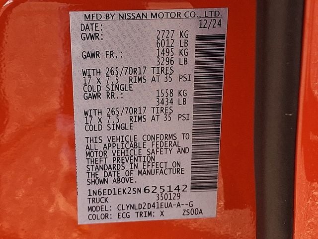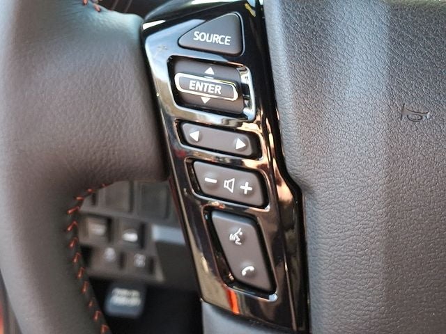 THIS VEHICLE INCLUDES THE FOLLOWING FEATURES AND OPTIONS: Telematics Delete Package (NissanConnect Services & Wi-Fi Hotspot Delete), Tow Package, 4WD, 17 Painted Alloy Wheels, 2-Tone Beadlock Style Wheel Accessory, 3.692 Axle Ratio, 4-Wheel Disc Brakes, 6 Speakers, ABS brakes, Air Conditioning, Alloy wheels, AM/FM radio: SiriusXM, Anti-whiplash front head restraints, Auto High-beam Headlights, Automatic temperature control, Blind Spot Warning, Brake assist, Bumpers: body-color, Delay-off headlights, Driver door bin, Driver vanity mirror, Dual front impact airbags, Dual front side impact airbags, Electronic Stability Control, Electronic Tailgate Lock, Emergency communication system, Essentials Kit, Front anti-roll bar, Front Bucket Seats, Front Center Armrest, Front dual zone A/C, Front fog lights, Front reading lights, Front wheel independent suspension, Fully automatic headlights, Illuminated entry, Knee airbag, Leather Shift Knob, Leather steering wheel, Low tire pressure warning, Nissan Tailgate Audio by Kicker, Occupant sensing airbag, Off-Road Style Step Rails, Overhead airbag, Overhead console, Panic alarm, Passenger door bin, Passenger vanity mirror, Power door mirrors, Power driver seat, Power passenger seat, Power steering, Power windows, Premium Paint, PRO Embroidered Premium Cloth Seat Trim, PRO-4X Carpeted Floor Mats (DISC), Radio data system, Radio: SXM/AM/FM/AUX/USB Audio System, Rear anti-roll bar, Rear seat center armrest, Rear side impact airbag, Rear step bumper, Remote Engine Starter, Remote Engine Starter Accessory, Remote keyless entry, Security system, Speed control, Speed-sensing steering, Split folding rear seat, Steering wheel mounted audio controls, Tachometer, Telescoping steering wheel, Tilt steering wheel, Traction control, Trip computer, Variably intermittent wipers, Voltmeter, and Wireless Apple CarPlay/Wireless Android Auto.